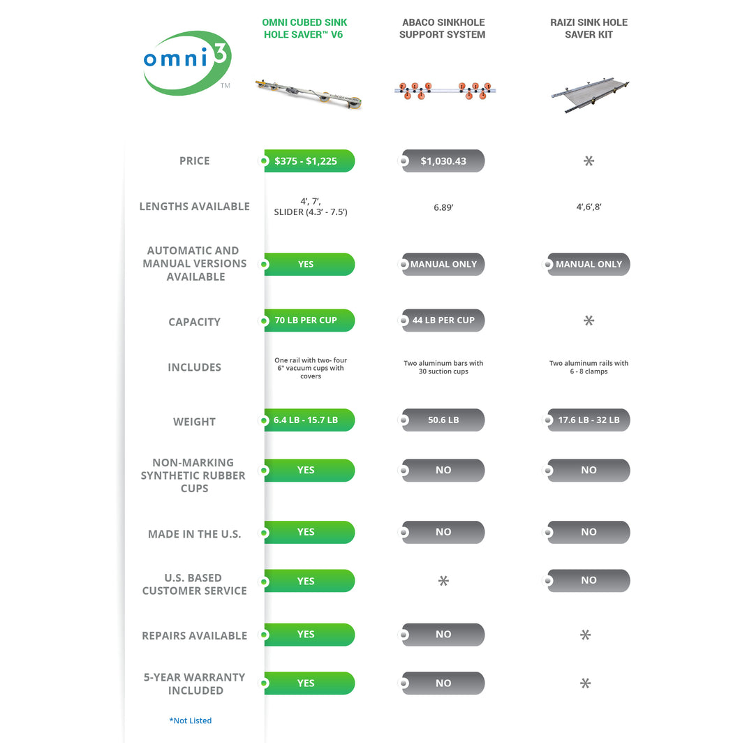 To help you see how the Sink Hole Saver™ stacks up against similar reinforcement tools in the industry, we've prepared a comparison chart.