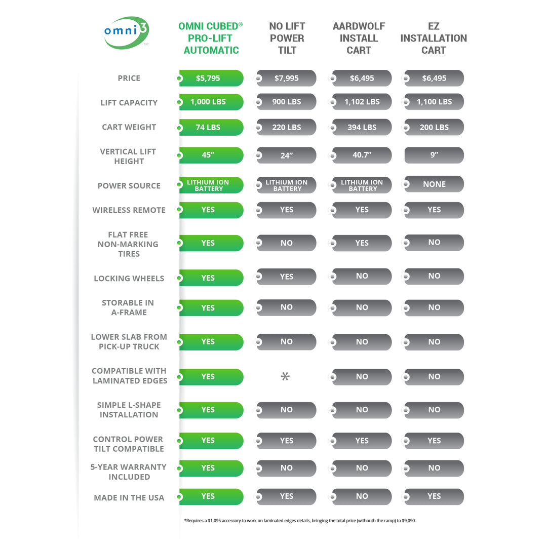 To help you see how the Pro-Lift Automatic stacks up against similar carts in the industry, we've prepared a comparison chart.