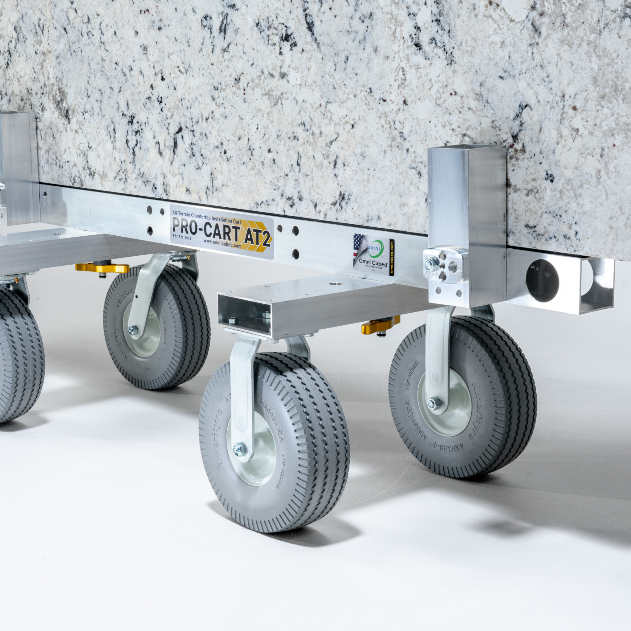10" flat-free, non-marking, closed-cell tires easily roll over gravel and lawns. Unlike other flat-free tires that are imported, our American made closed-cell tires perform like pneumatic tires (absorbing bumps) so the material doesn’t. And because they are “true” closed-cell, they will not absorb water or moisture like cheap imported tires.