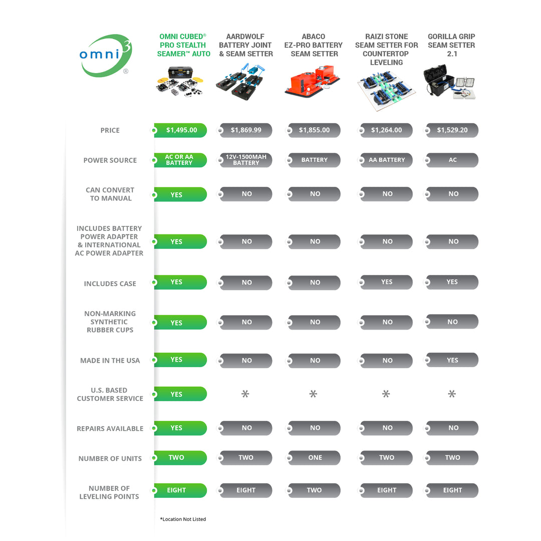To help you see how the Pro Stealth Seamer™, Auto stacks up against similar seamers in the industry, we've prepared a comparison chart.