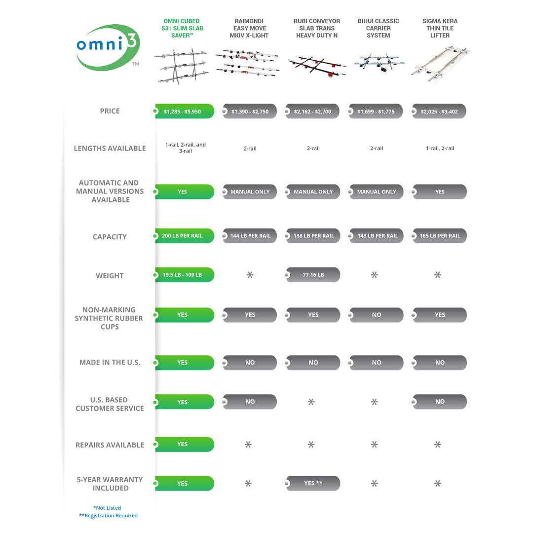 To help you see how the S3 | Slim Slab Saver™ stacks up against similar reinforcement tools in the industry, we've prepared a comparison chart.